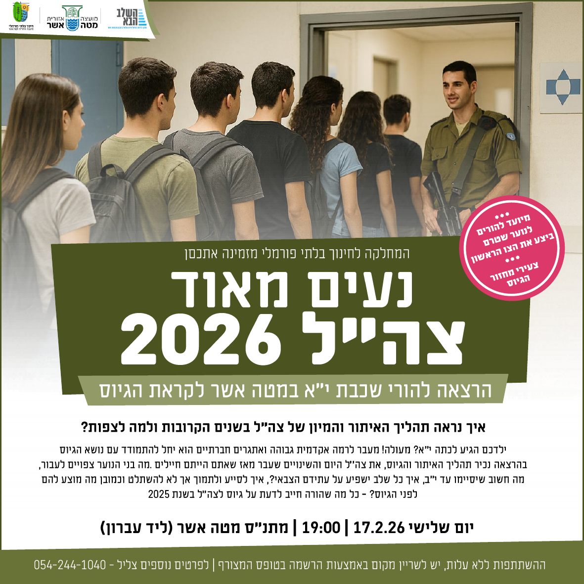 צה"ל 2026- הרצאה להורי כיתות י"א