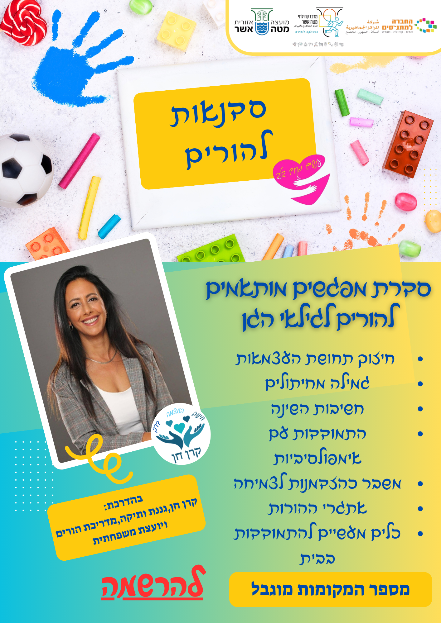 בהדרכת קרן חן גננת ותיקה, מדריכת הורים ויועצת משפחתית.